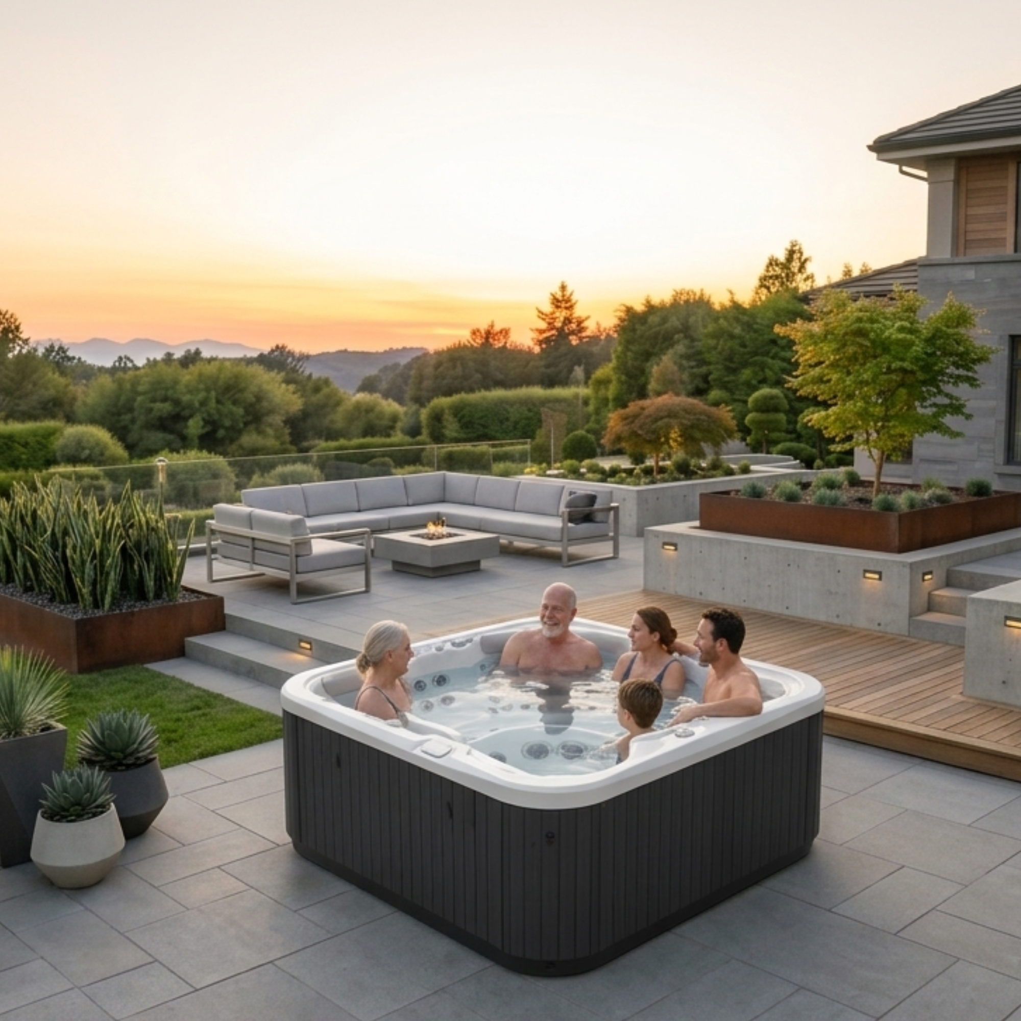 Recline in the lounger or choose from the back massage seat or side-by-side shiatsu massage seats as you socialise in comfort. Thoughtfully designed so everyone can enjoy the same view together, the Spectrum™ makes it easy to relax and share the moment.